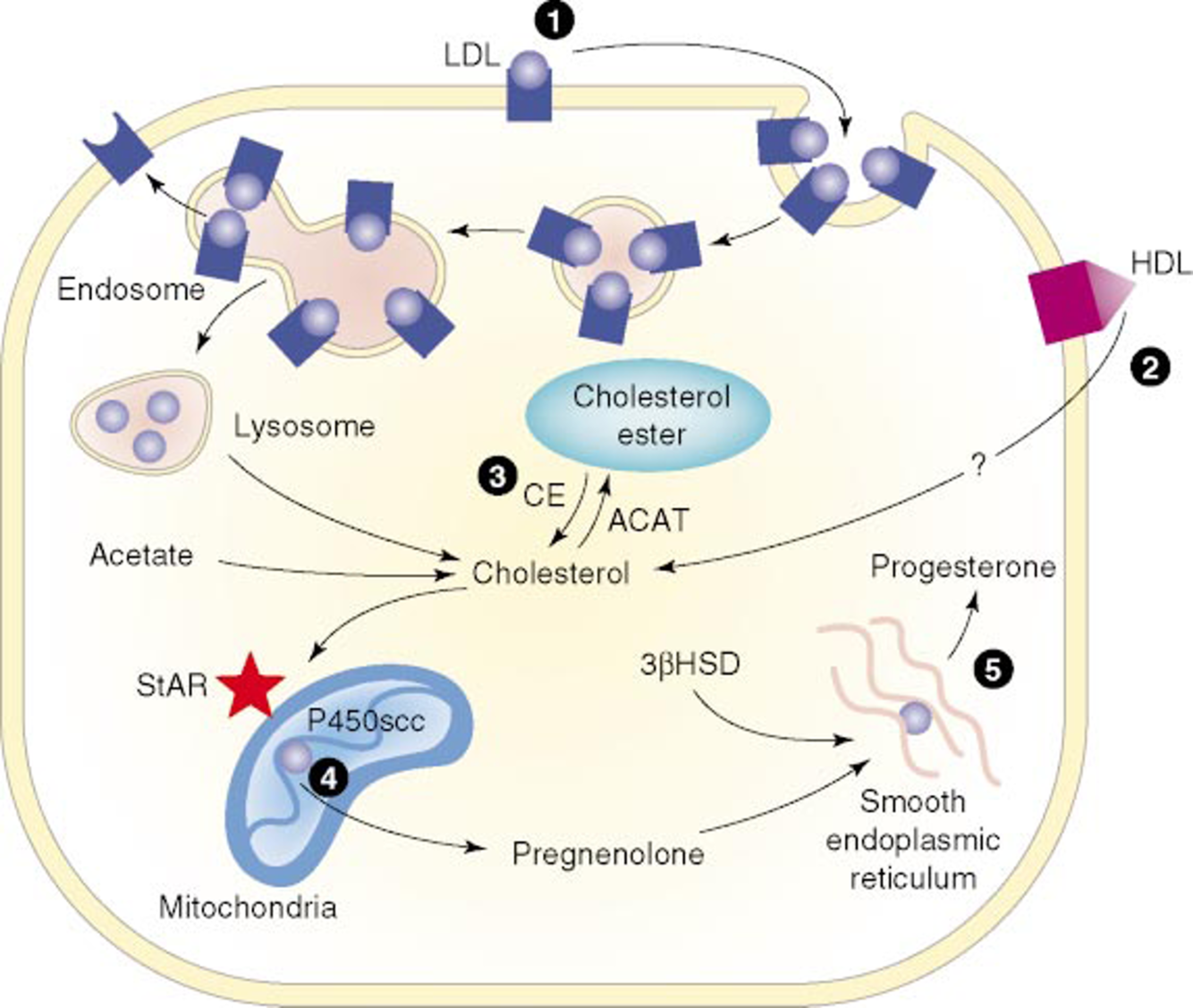 Imports cholesterol into mitochondria so it can undergo the first step in steroid synthesis