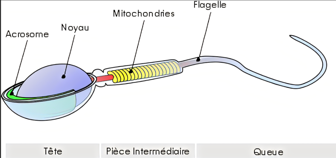 Dans le spermato : immobile et enroulée autout de l’axonème de la partie intermédiaire du flagelle