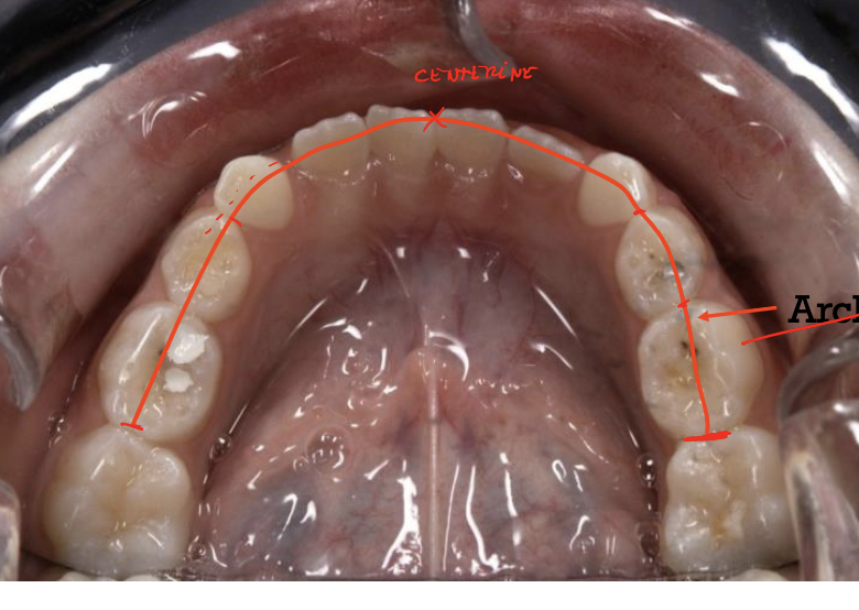 Measured from the distal surface of the second primary molar (or mesial of the permanent first) around the arch over the contact points and incisal edges in a smoothed curve