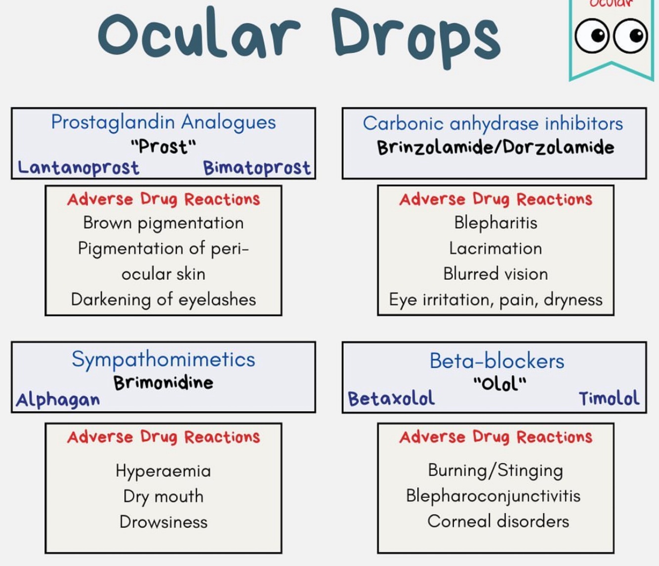 Brimodine- dry mouth, drowsiness