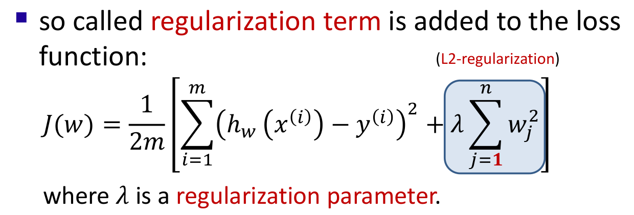 Weights are penalized too much, turns into a straight line (h_w(x) = w_0 + 0*w_1 + …) -> underfitting.