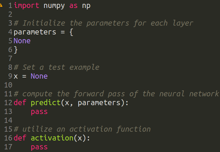 compute the forward pass of the neural network def predict(x, parameters): pass