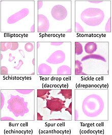 Sphere shaped cells rather than donut shaped , more fragile than normal red blood cells.