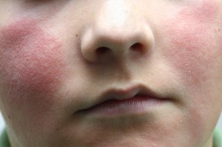 this presents with a diffuse erythematous facial rash appearing on one or both cheeks (resembling a ‘slapped cheek’) in children
