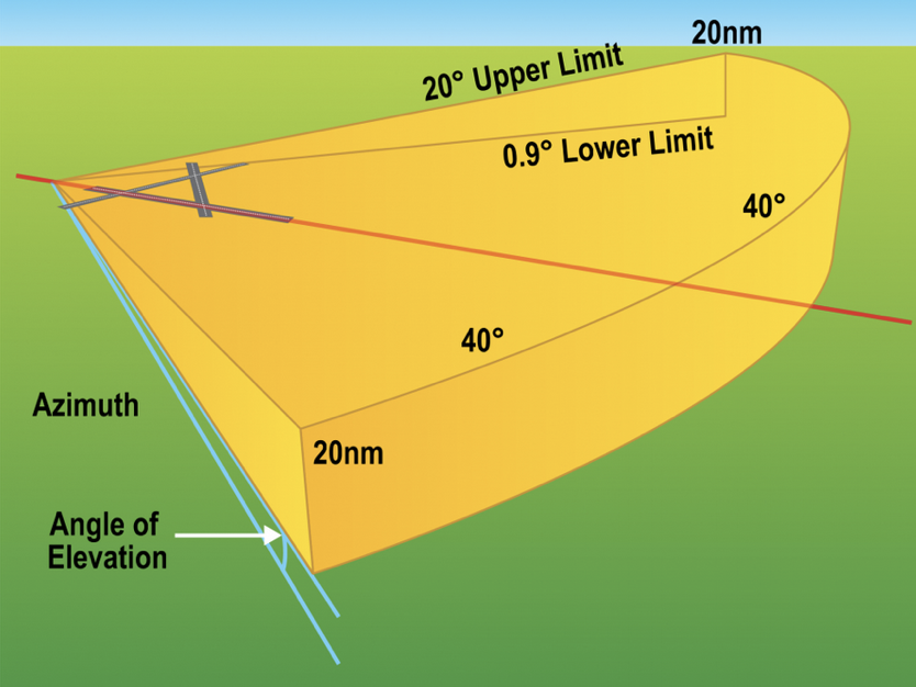 Elevation limits are from … degrees to … degrees from the horizontal, up to … ft. and out to … NM