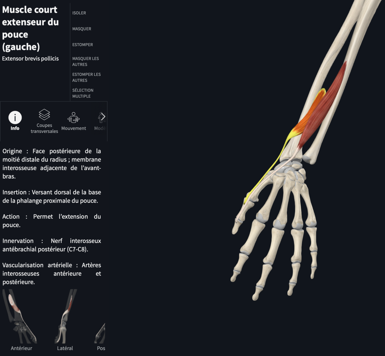 Quels sont les tendons extenseurs du pouce
