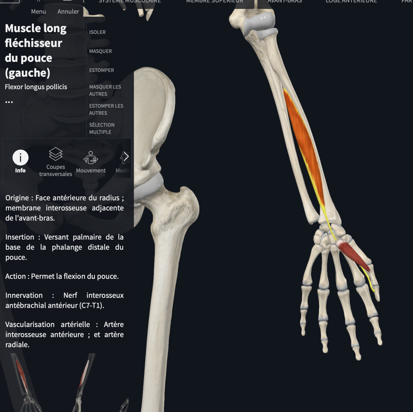 Quels sont les tendons des fléchisseurs du pouce