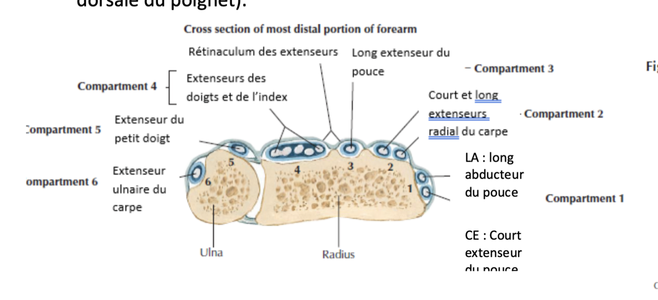 Décrire l’environnement des tendons des extenseurs extrinsèques traversent le poignet?