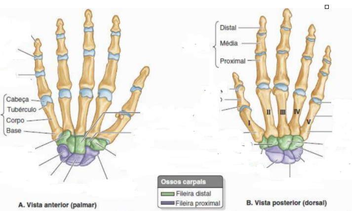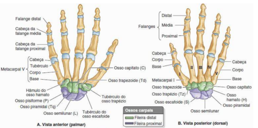 Trapézio: um osso com quatro faces situado na região lateral do carpo; articula-se com os ossos metacarpais I e II,