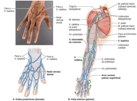 veia cefálica- região anterolateral do braço e punho- une-se na axilar