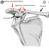fixação do ligamento conoide, parte medial do ligamento coracoclavicular