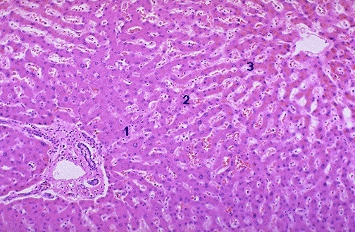 3 zones, with the 3rd zone making up more mature hepatocytes