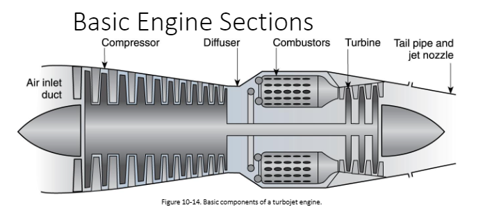air inlet, compressor, diffuser, combustors, turbine, tail pipe and jet nozzle