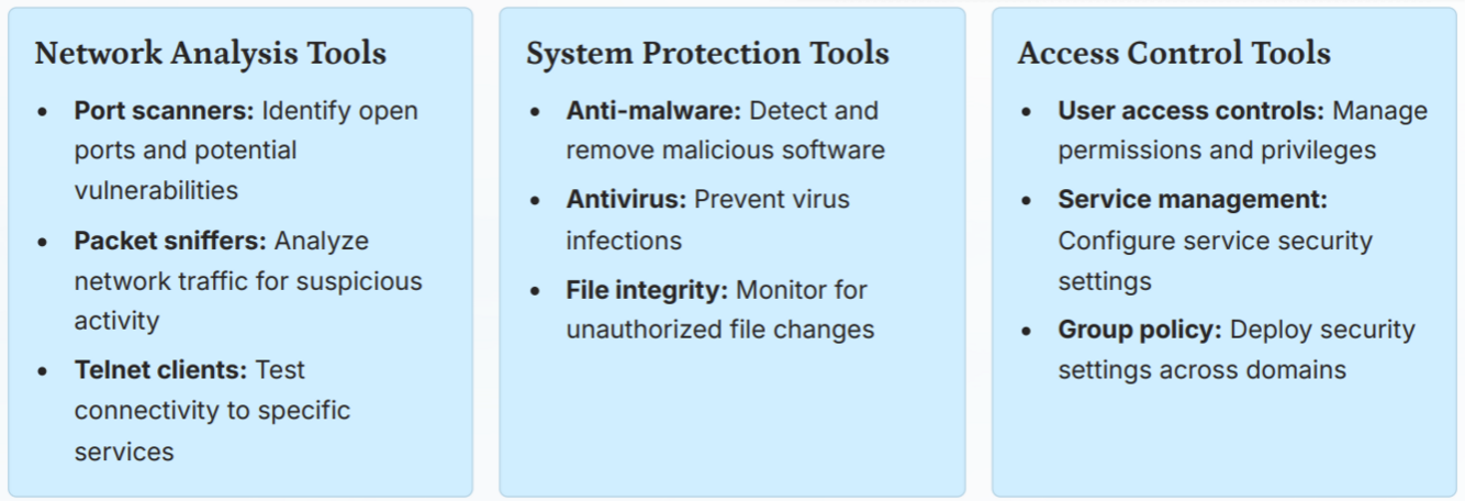 - Permission configuration errors, authentication failures, access control list problems, Directory service connectivity issues
