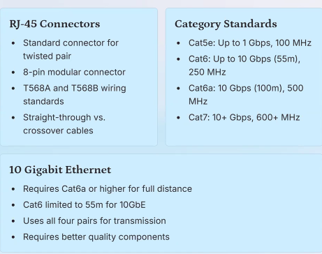 - Cat5e, Cat6, Cat5a, Cat7
