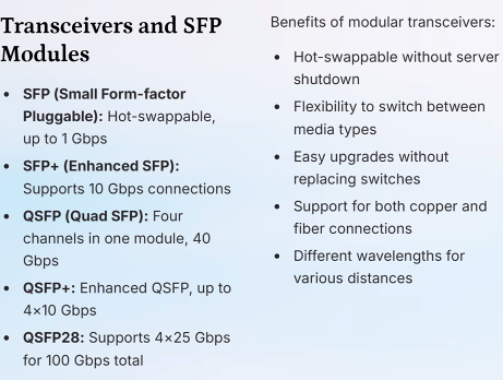- Different speeds 1Gbps, 10Gpbs