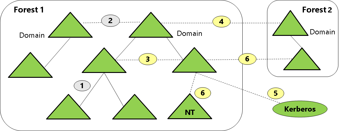 The forest establishes the relationship between trees that have different DNS name spaces.