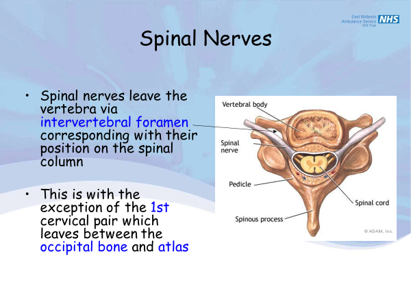 •This is with the exception of the 1st cervical pair which leaves between the occipital bone and atlas