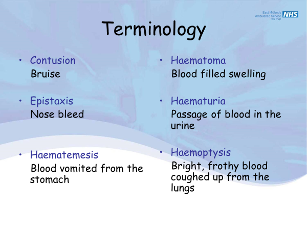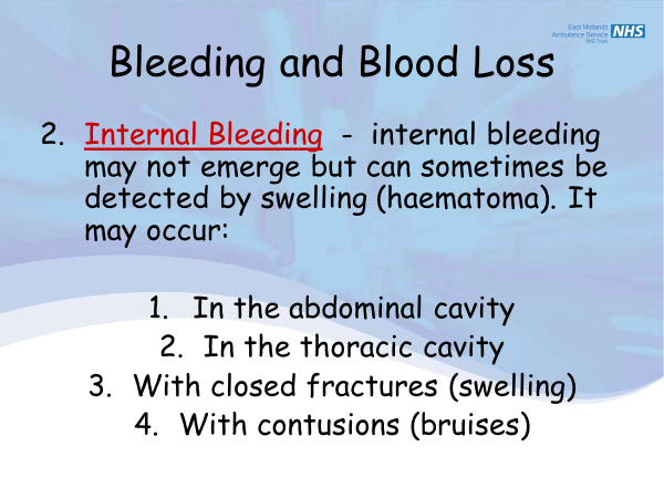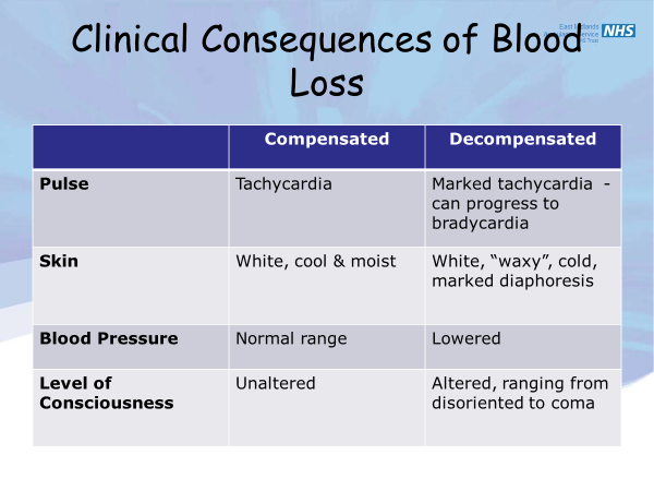 •Identify, in writing, the clinical consequences of bleeding and state how observation of the patient assists in assessing the severity of their condition.