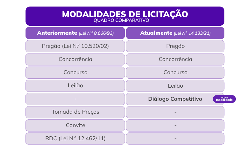 V - diálogo competitivo: modalidade de licitação para contratação de obras, serviços e compras em que a Administração Pública realiza diálogos com licitantes previamente selecionados mediante critérios objetivos, com o intuito de desenvolver uma ou mais alternativas capazes de atender às suas necessidades, devendo os licitantes apresentar proposta final após o encerramento dos diálogos;