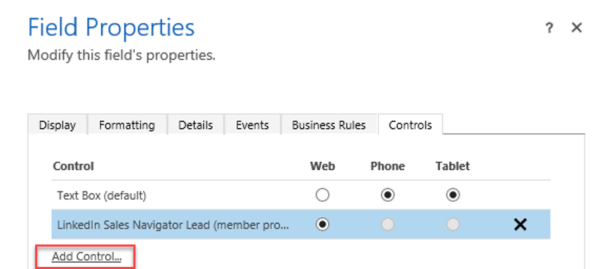 Oltre ai dati relativi al Field, è possibile configurare anche molti controls specializzati da utilizzare nel form.Questi controls possono fornire una visualizzazione unica dei dati o l’accesso a un servizio come la mappatura.
