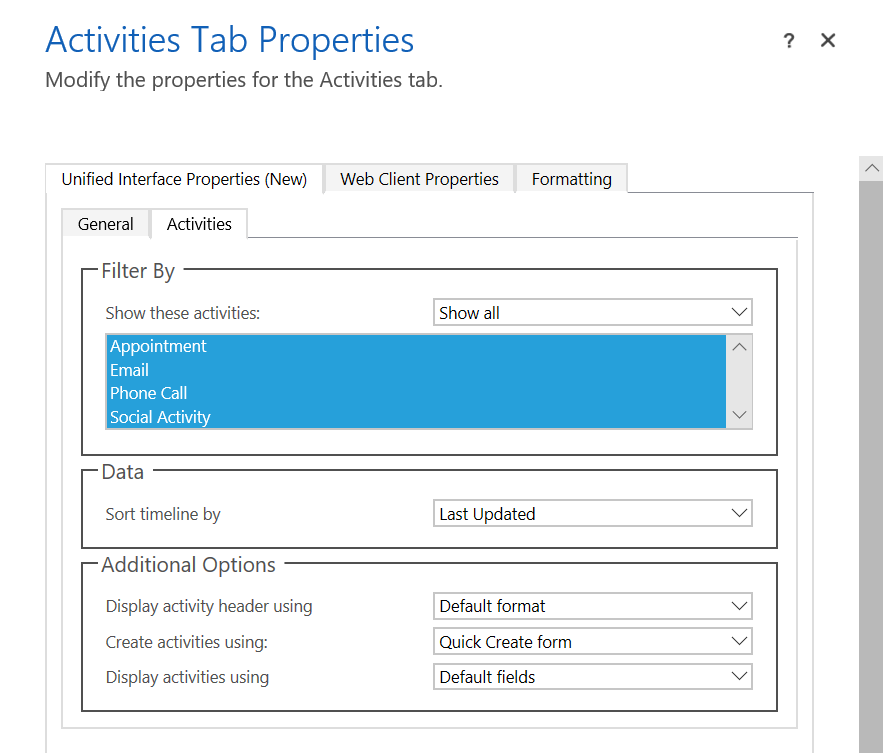 La Timeline Control fornisce una posizione combinata per visualizzare le interazioni con i clienti, comprese le activities and notes, tutte in un’unica posizione.