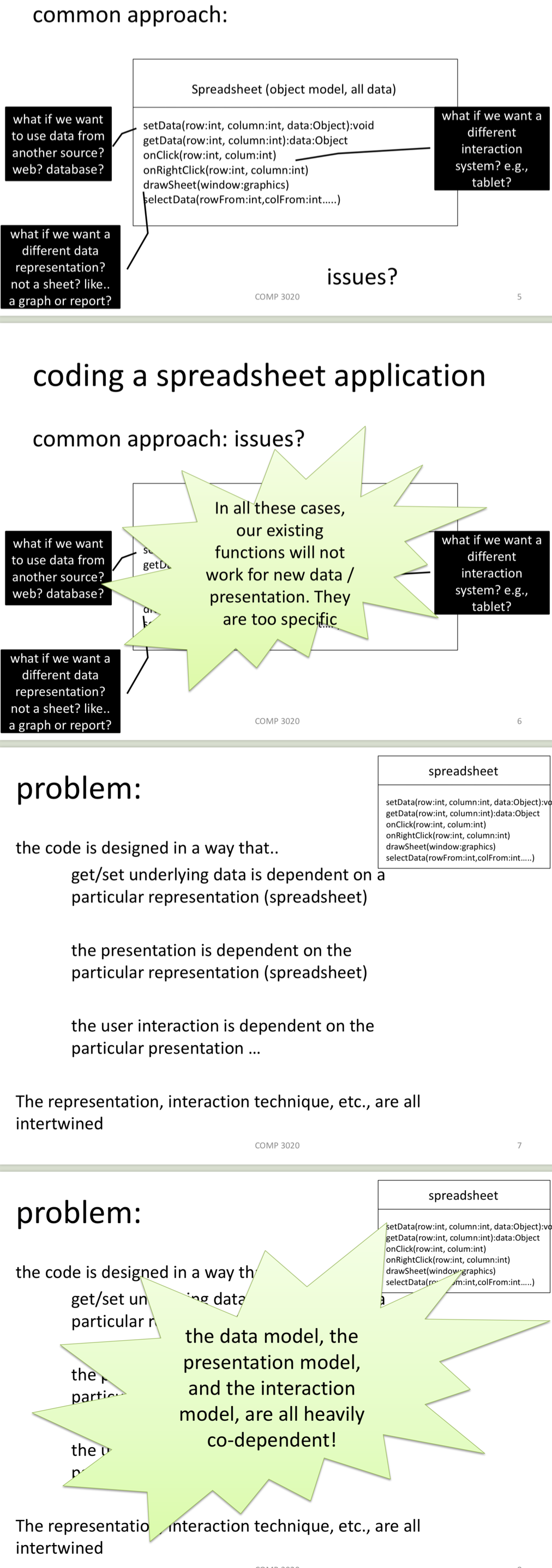 What is the common approach to coding spreadsheet app and what are the common issues?