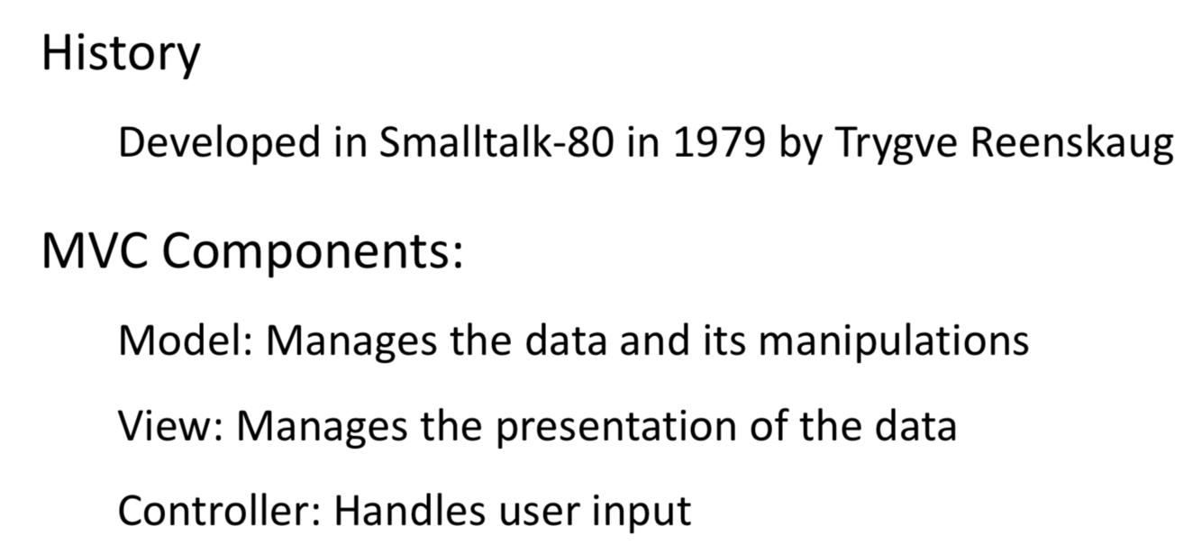 What is the history of MVC and what are the components?