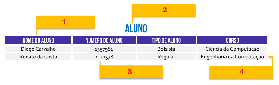 Na terminologia formal, a tabela é chamada de _______, as linhas são chamadas de ______ e as colunas são chamadas de _________.