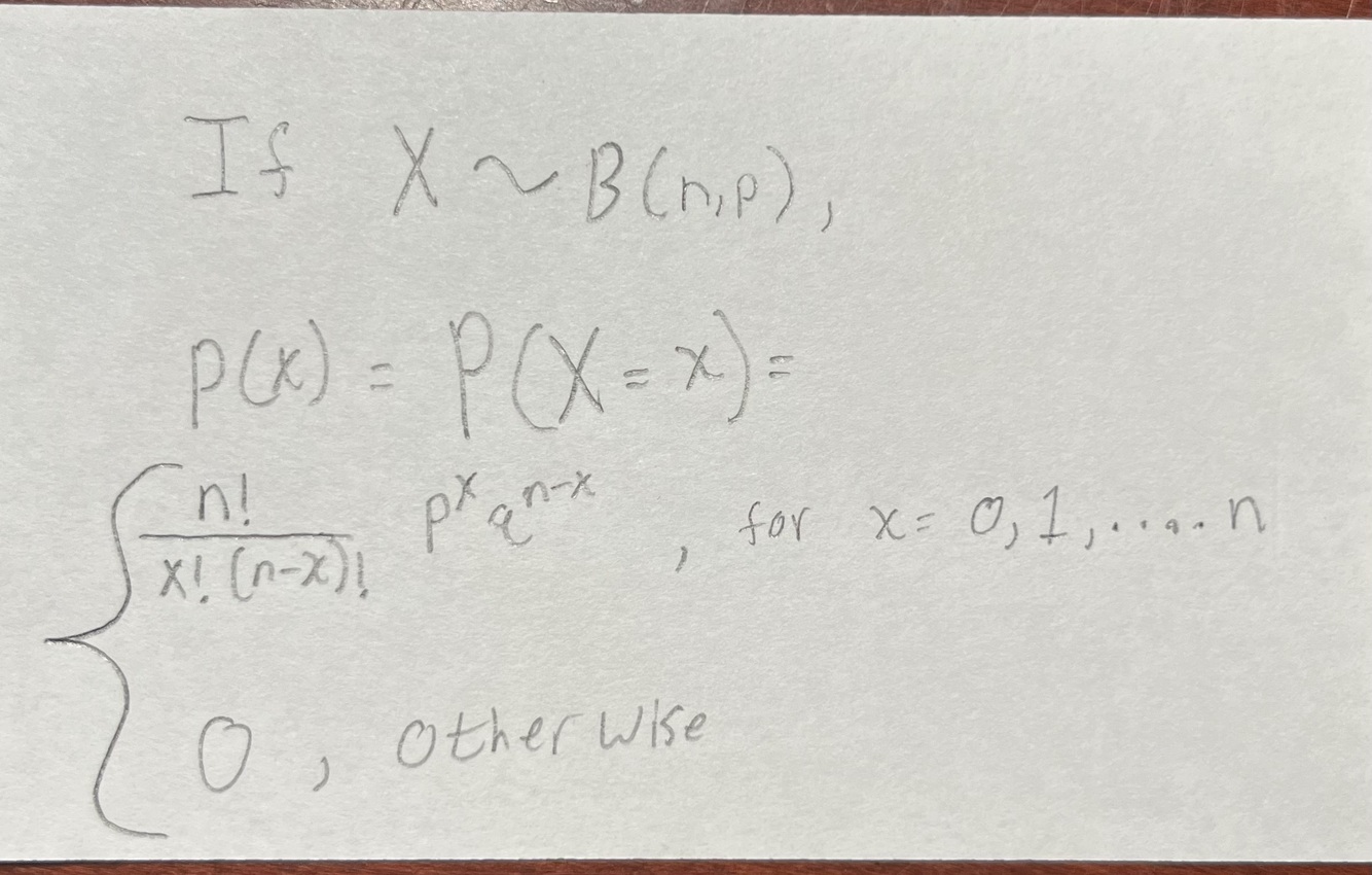 If X~Bin(n,p), p(x) = P(X = x) = …