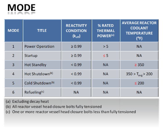 Basically gives the operating status of the plant when fuel is present in the reactor through a combination of: