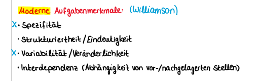 Was sind moderne Aufgabenmerkmale nach Williamson?