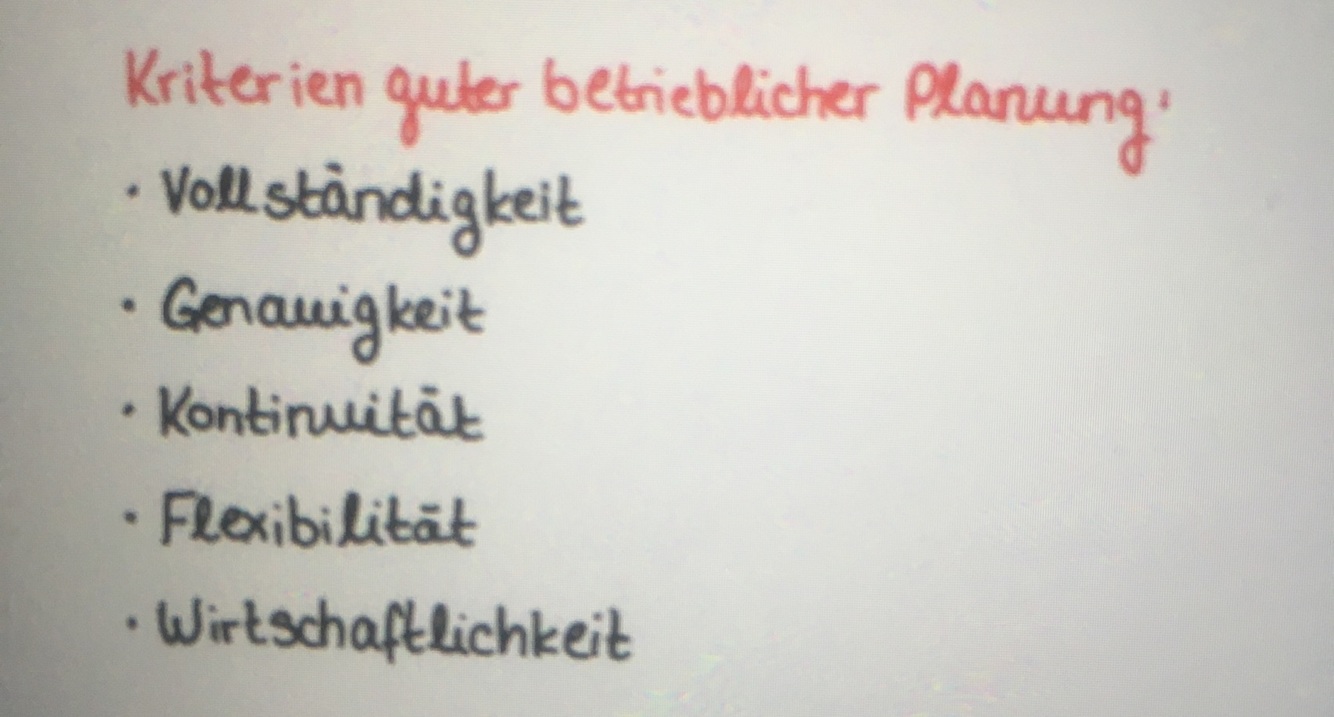 Kriterien guter betrieblicher Planung
