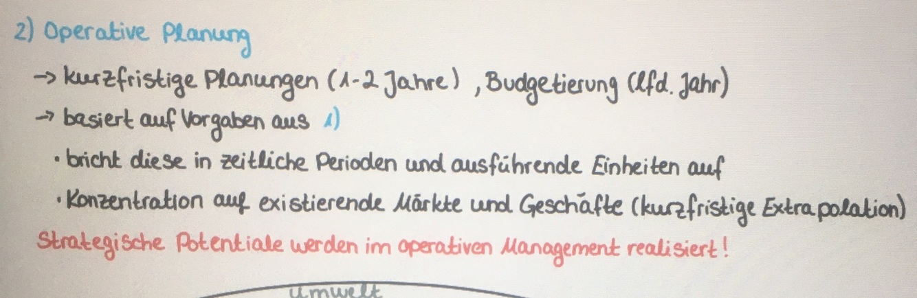 Aufgaben der operativen Planung