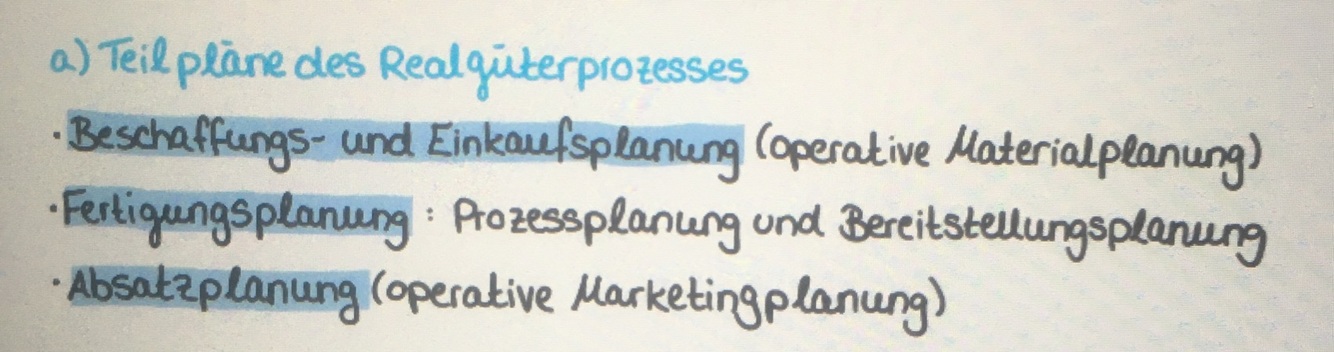 Teilpläne des Realgüterprozesses