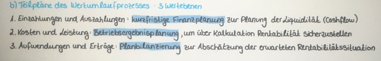 Teilpläne des Wertumlaufprozesses