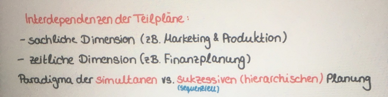 Interdependenzen der Teilpläne