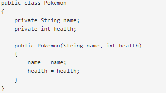 Hint : We expect the instance variables name and health to be initialized in the constructor.