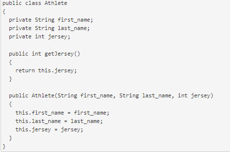 Given the following definition for the class Athlete: