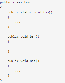 Which methods of class Foo can be called without an actual instance of the class Foo?