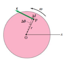 A point in the object (P) moves through an angle Θ when it travels the distance (l) measured along the circumference of its circular path.