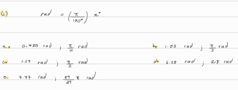 rad = π/180° * x°