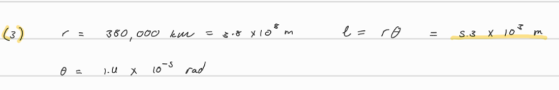 3. (I) A laser beam is directed at the Moon, 380,000 km from Earth. The beam diverges at an angle (Fig. 8–40) of 1.4 × 10–5 rad. What diameter spot will it make on the Moon?