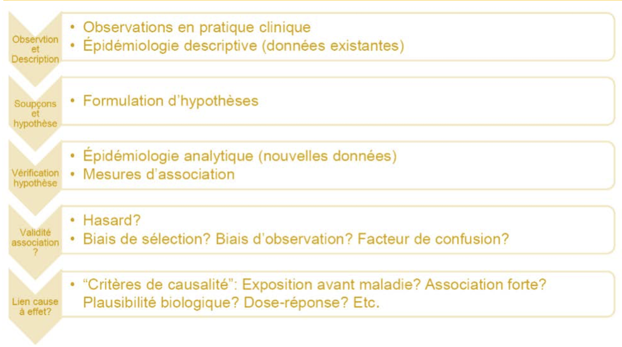 Par rapport aux différentes étape de la démarche épidémiologique, explique c’est quoi Lien cause à effet? Dit aussi de quoi on peut s’aider