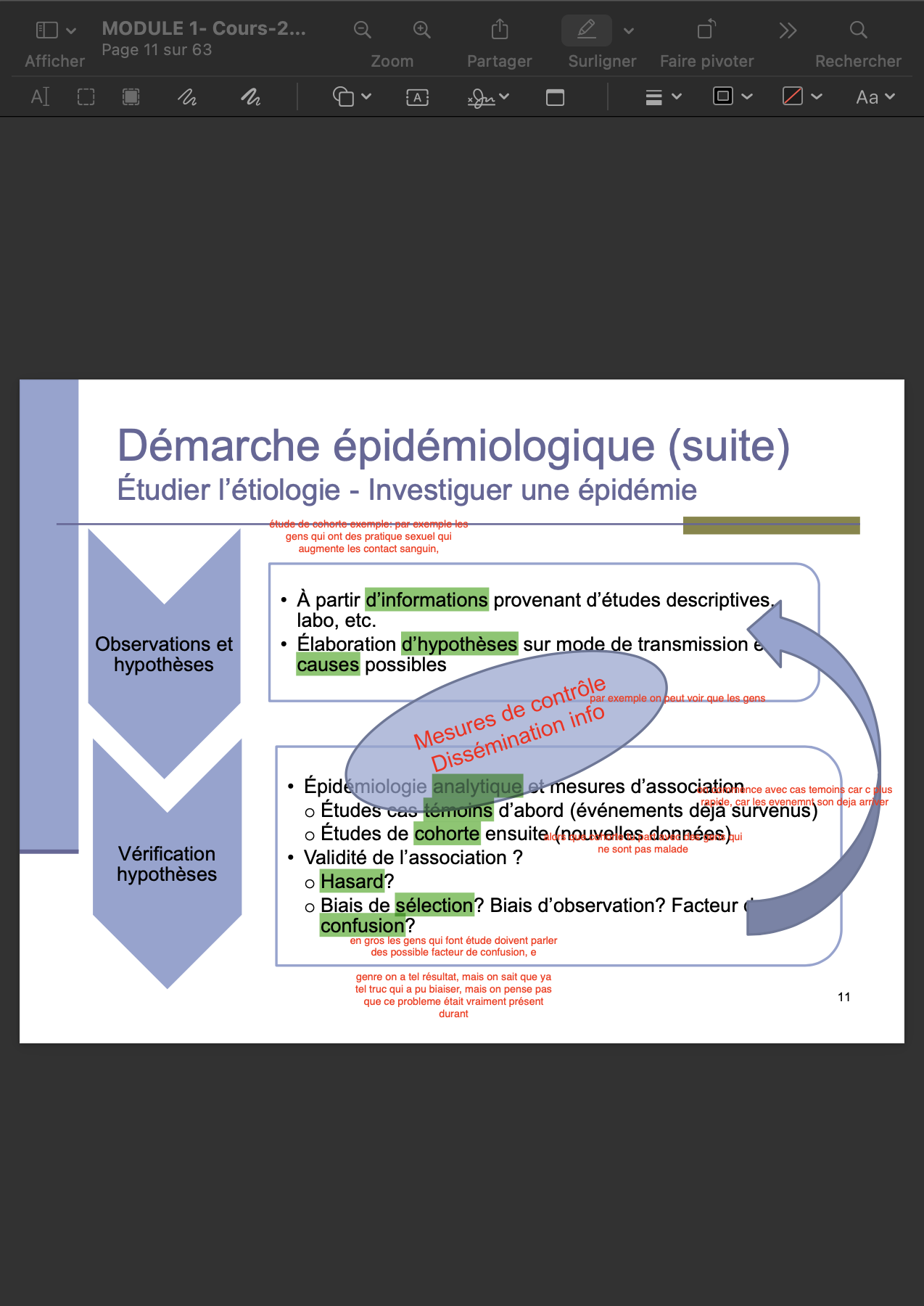 Par rapport aux différentes étape de la démarche épidémiologique, explique c’est quoi Vérification des hypothèse