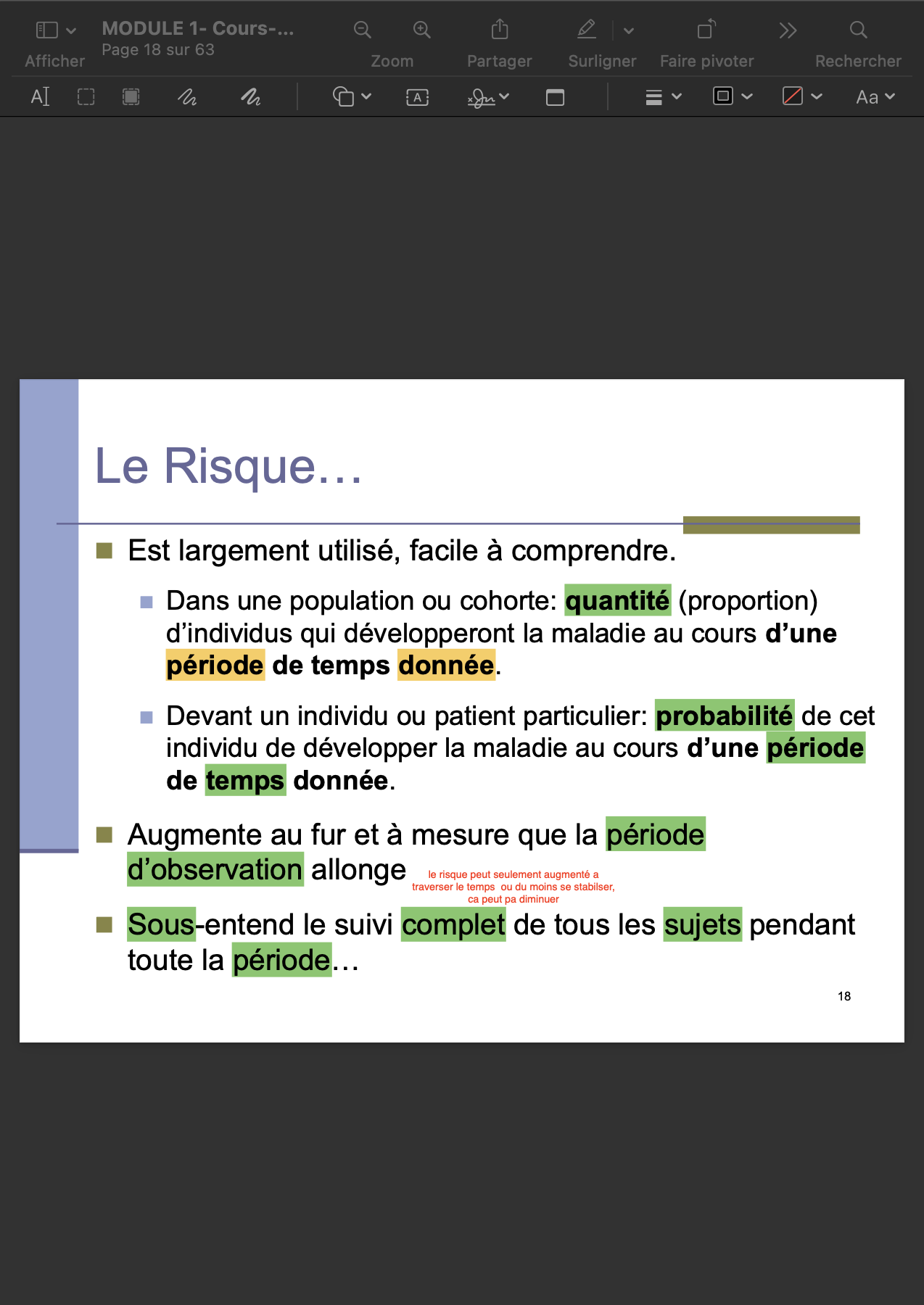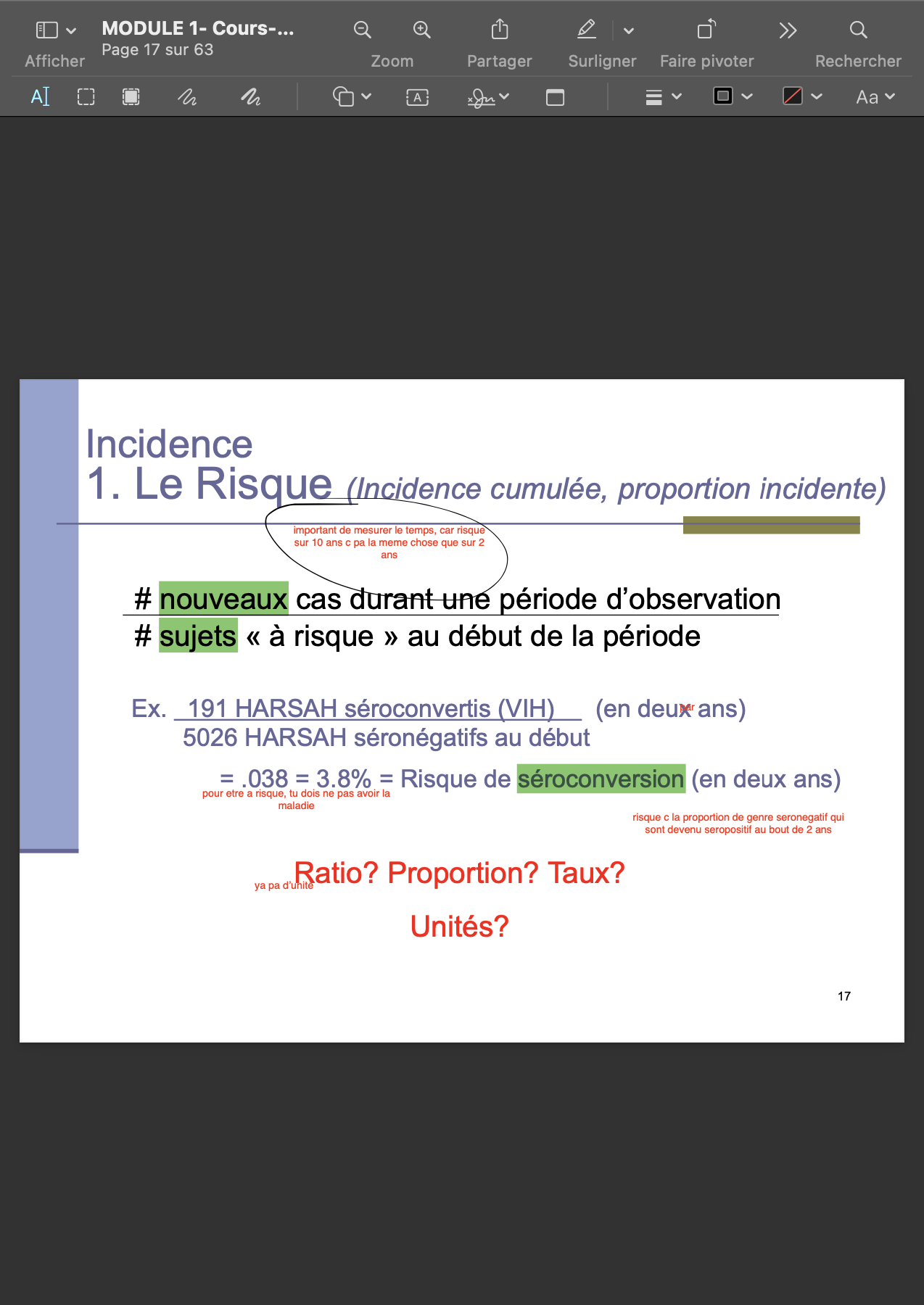 nouveaux cas durant une période d’observation / # sujets « à risque » au début de la période