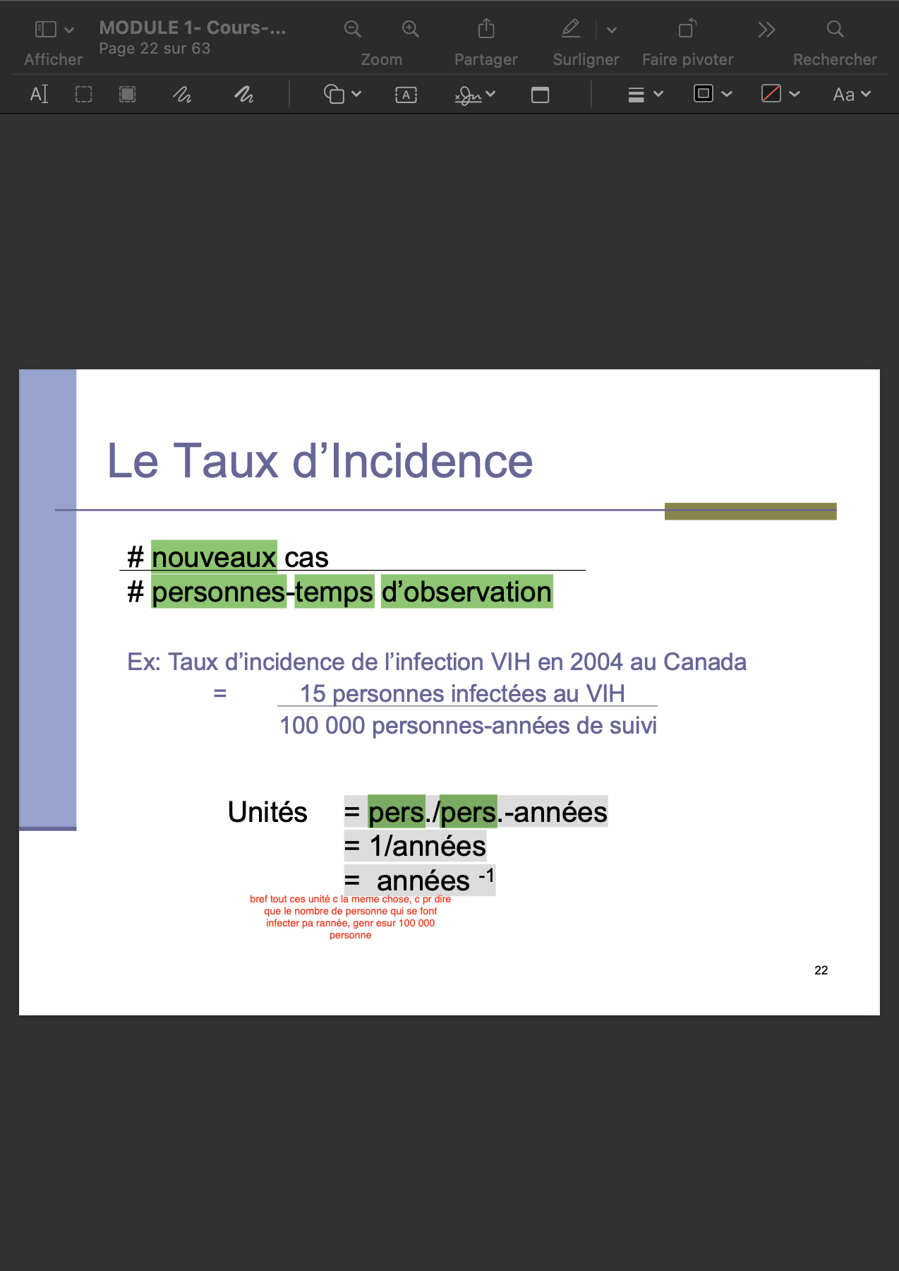 nouveaux cas / # personnes-temps d’observation