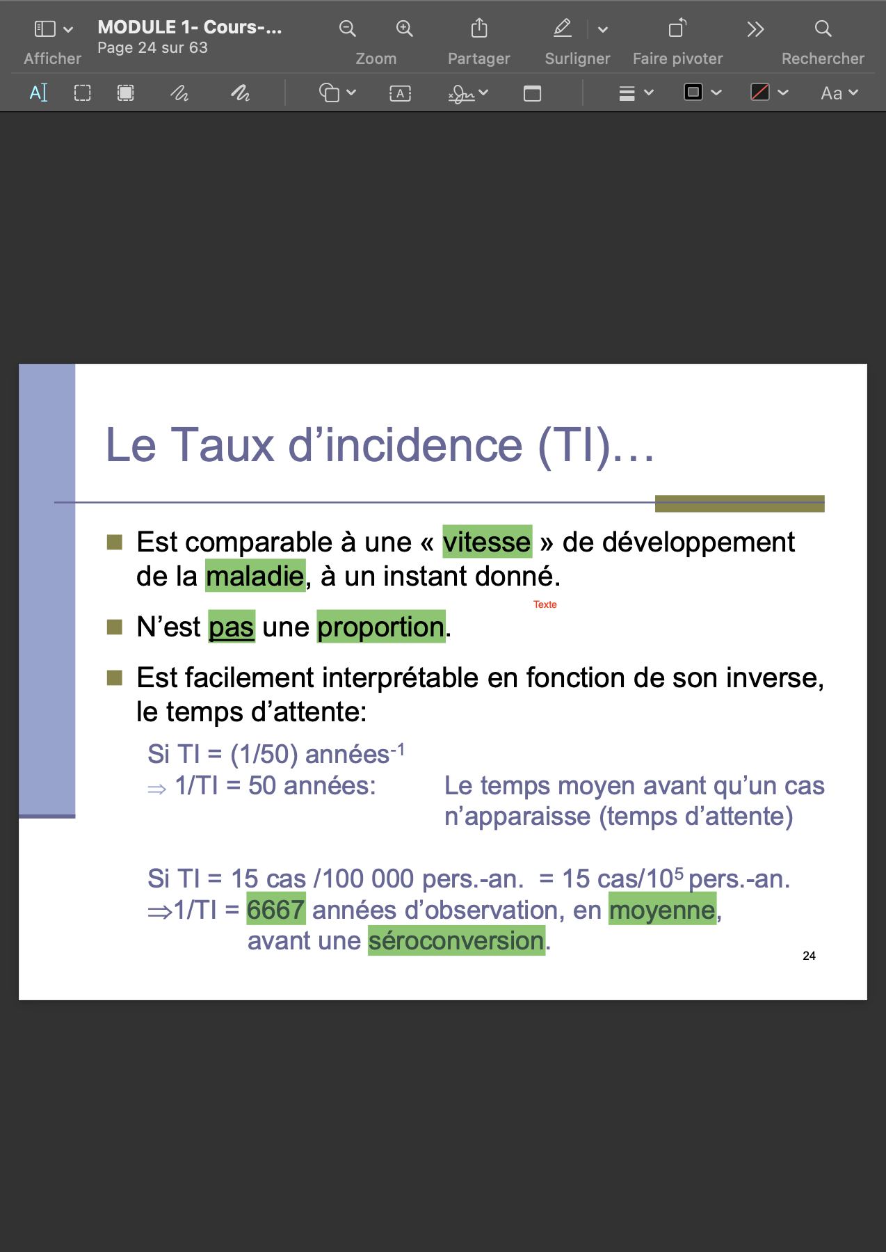 Pop: proportion de personne qui vont développer la maladie durant un période de temps donnée