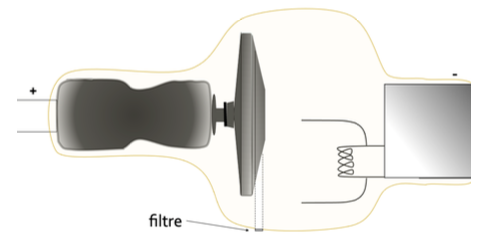 V ou F : lorsque soumis à un courant électrique, le filament chauffe, procurant de l’énergie aux électrons et causant la libération d’un petit nuage d’électrons autour de ce dernier.