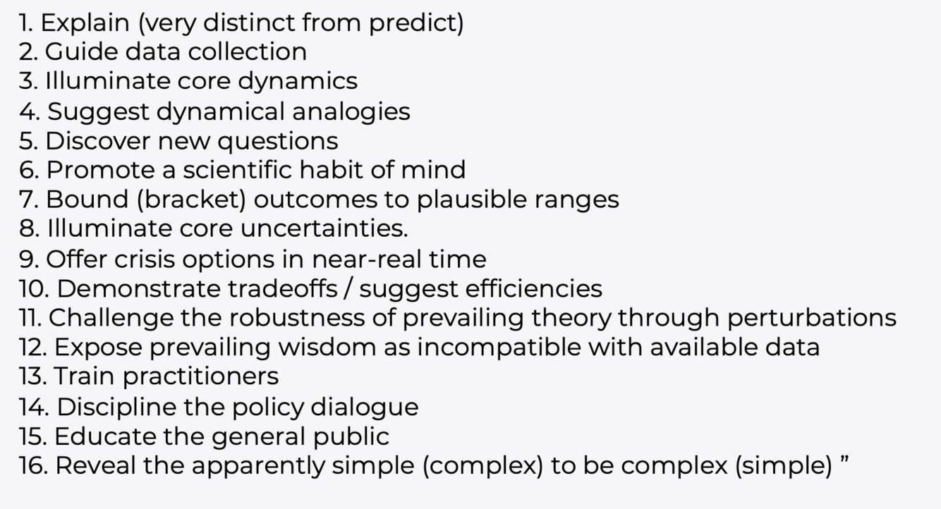 Could you give some additional reasons for modelling? (Name 10)